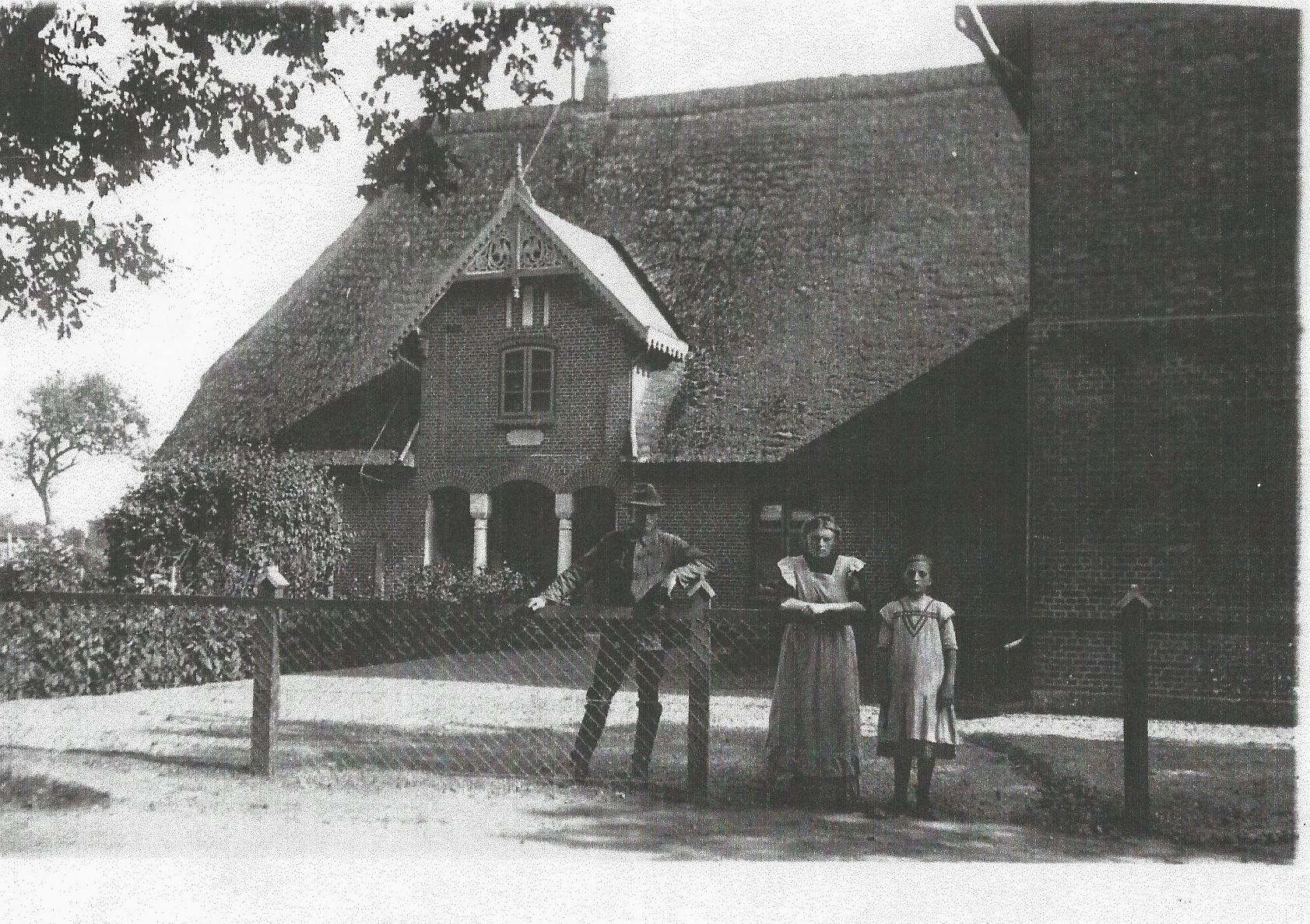 Das alte Gebäude war reetgedeckt und stand in der damals üblichen Nord-Süd Richtung, d. h. die große Diele war nach Süden gerichtet, der Wohnteil lag nach Norden.